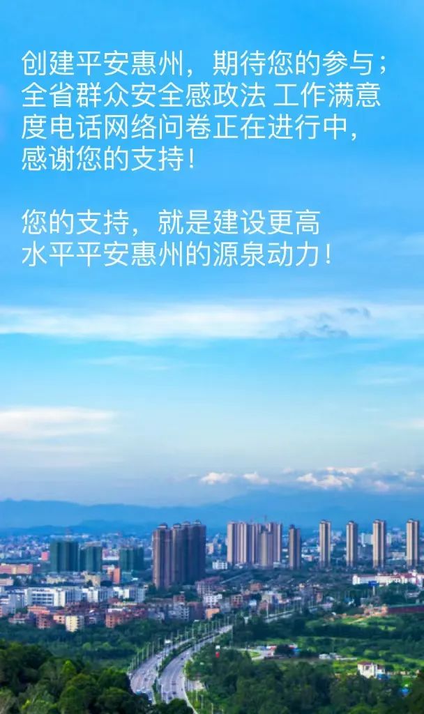 平安惠州 | 全省群眾安全感政法工作滿(mǎn)意度調查正在進(jìn)行中,感謝您的支持!