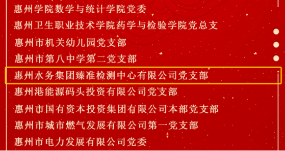 為表彰先進(jìn)、弘揚正氣,激勵全市各級黨組織和廣大黨員再接再厲、擔當作為,加快打造廣東高質(zhì)量發(fā)展新增長(cháng)極,市委決定,授予96名同志“惠州市優(yōu)秀共產(chǎn)黨員”稱(chēng)號,授予91名同志“惠州市優(yōu)秀黨務(wù)工作者”稱(chēng)號,授予122個(gè)黨組織“惠州市先進(jìn)基層黨組織”稱(chēng)號。其中市水務(wù)集團黃海燕獲“惠州市優(yōu)秀黨務(wù)工作者”稱(chēng)號,臻準檢測中心黨支部獲“惠州市先進(jìn)基層黨組織”稱(chēng)號。